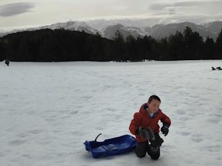 aujourd'hui alors qu'il est en vacances de neige avec sa mère...